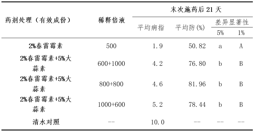 ″大蒜素+春雷霉素″ 應(yīng)用技術(shù)研究