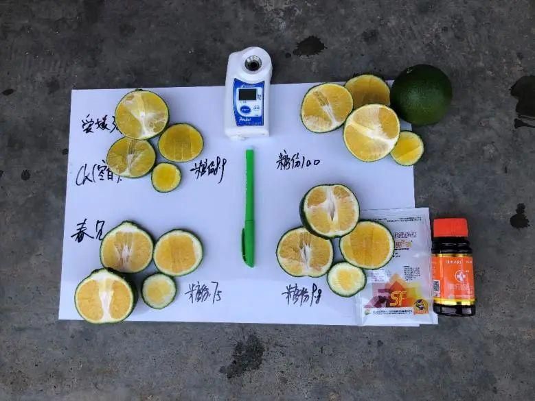 一般而言,不知火、春見無蟲無病無螨無青苔才可以套袋,所以在套袋前,果農要全面進行一次病蟲害防治。套袋前用藥加上天然蕓苔素能快速促進糖分的積累,促進內膛果實早著色、提前成熟,同時有防早衰、抗逆保鮮的作用,最終增加雜柑的經濟價值。小編推薦在果實轉色初期和套袋前,使用天然蕓苔素碩豐481?2000+高能紅鉀或香甜美(高鉀葉面肥)1000倍+殺蟲殺菌劑進行噴施,使用此方案處理的愛媛果實大小均勻,糖度高1-2度。